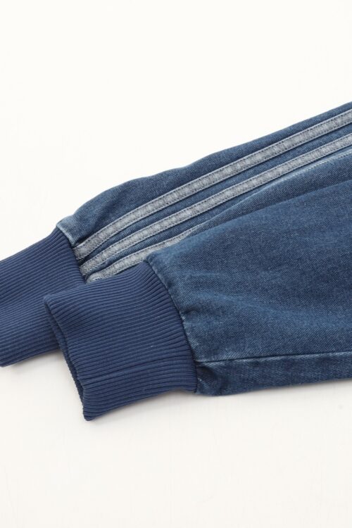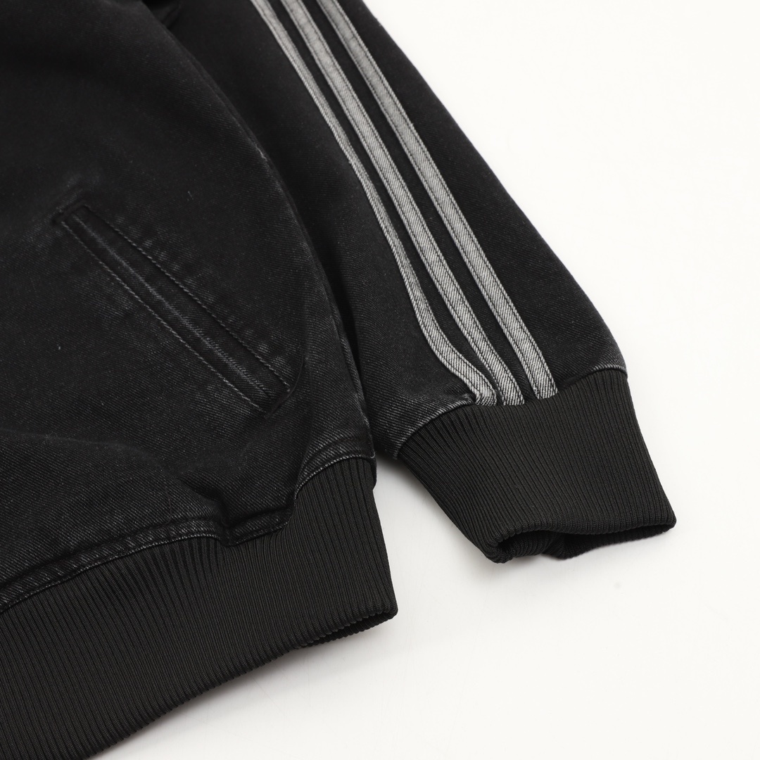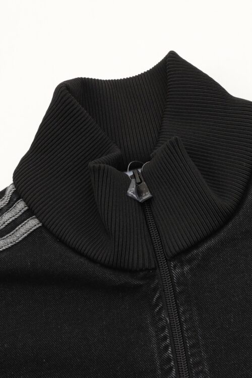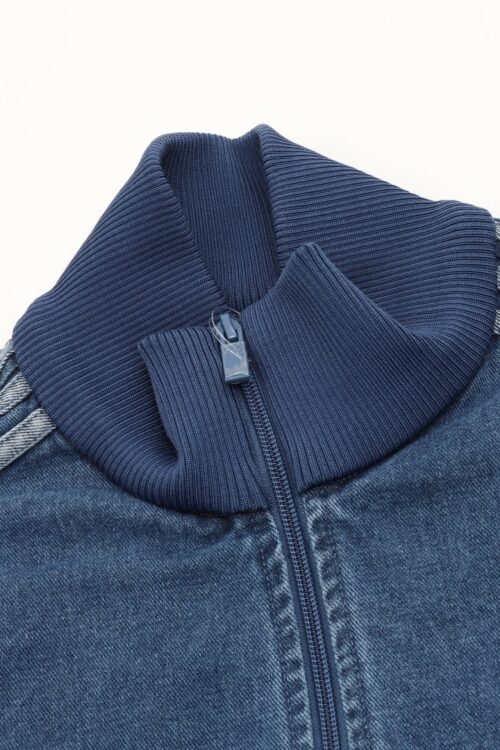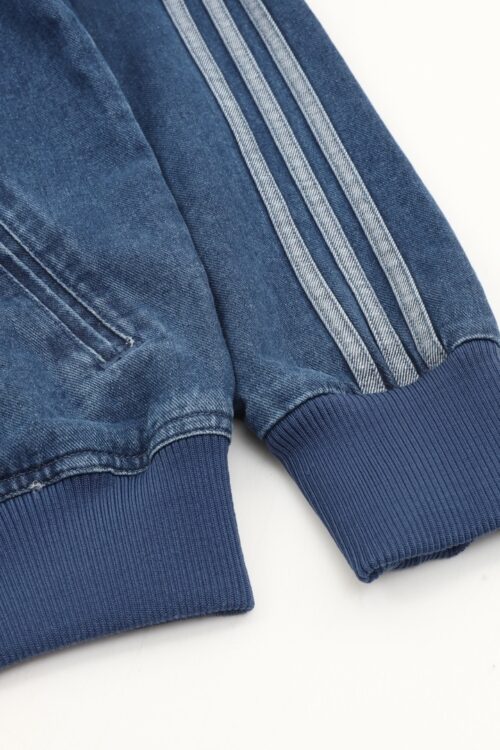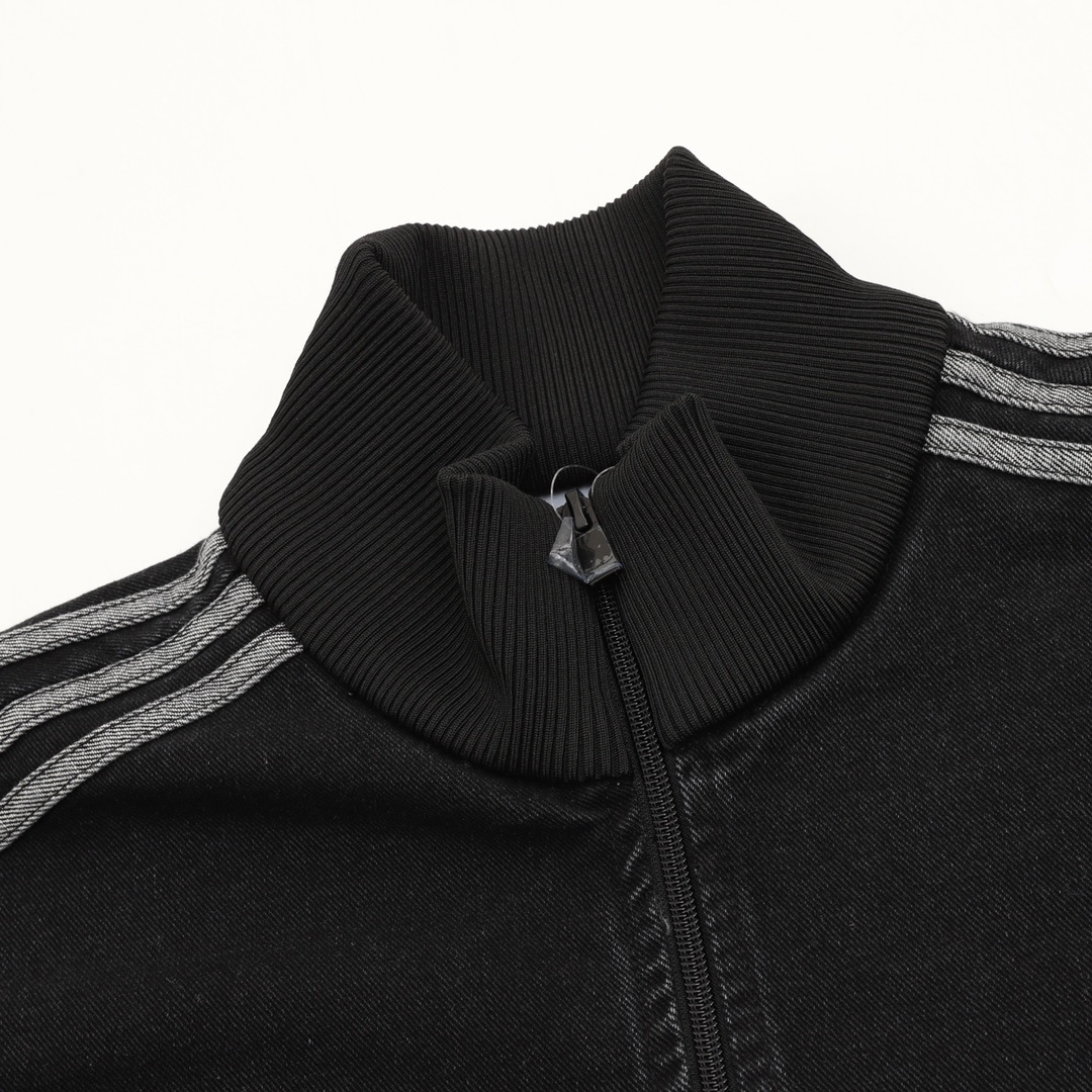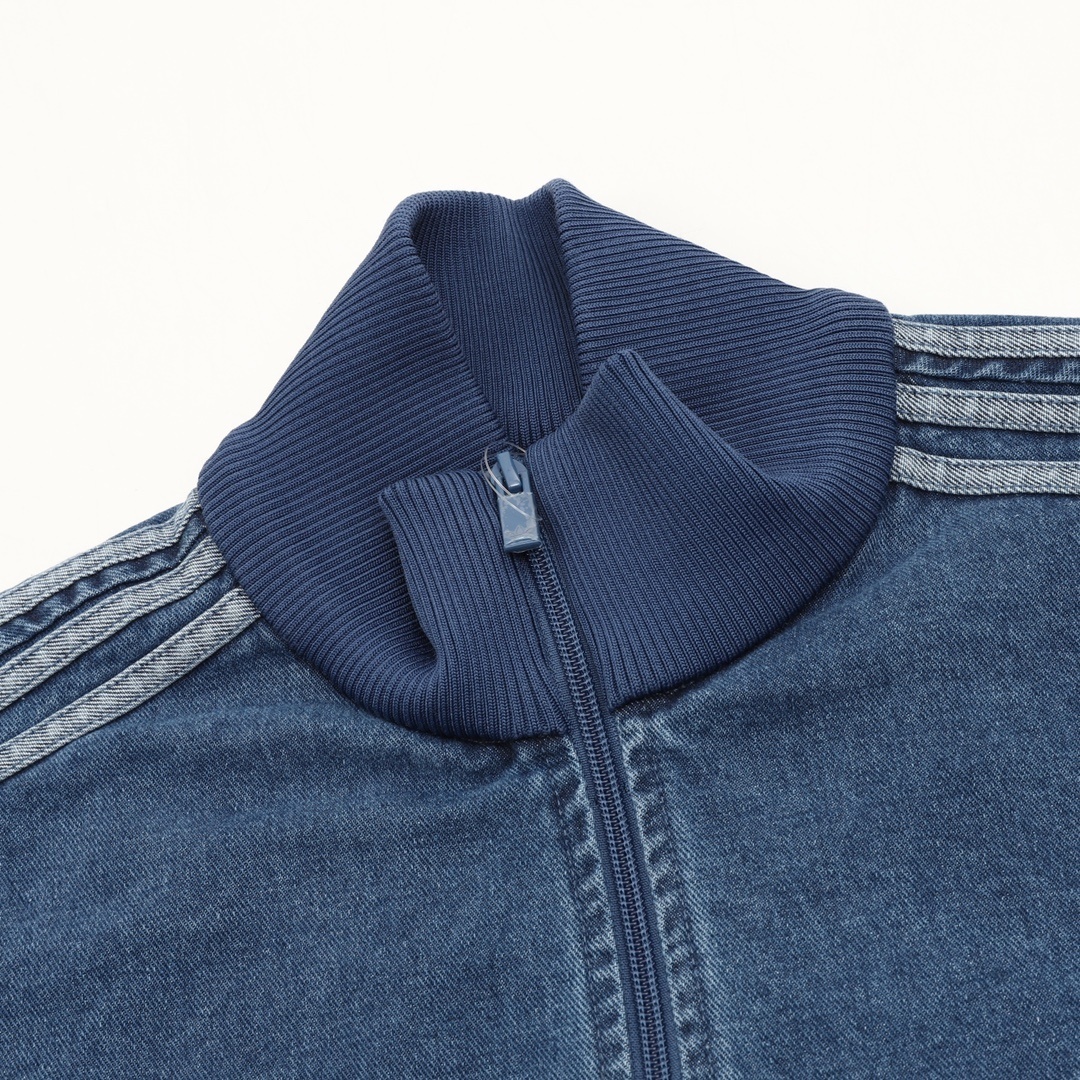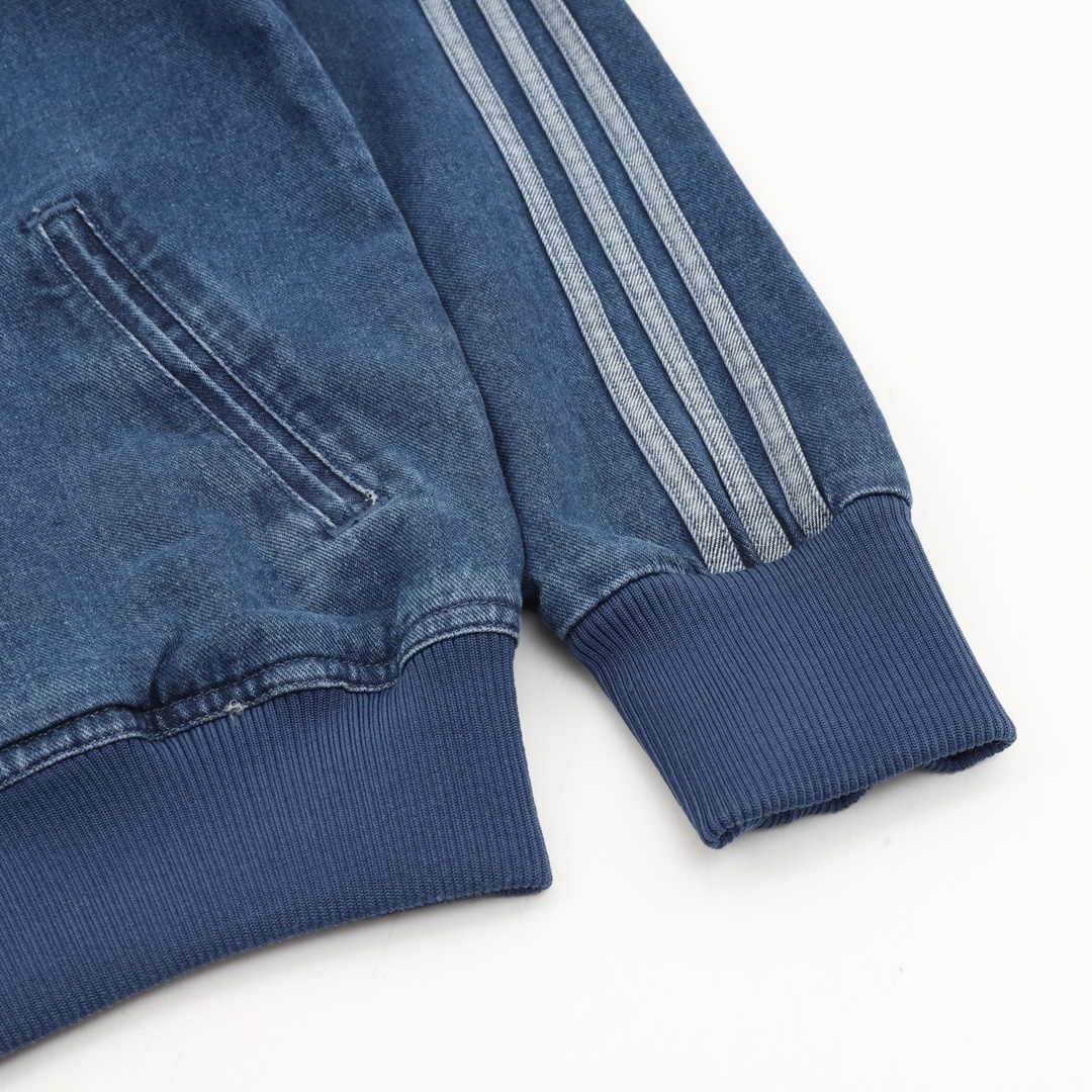 Featuring classic three stripes, a stand-up collar with a zipper, and ribbed cuffs and hem, it’s both sporty and casual. The relaxed fit is perfect for everyday wear or light exercise. The soft and breathable denim fabric is ideal for spring and autumn!