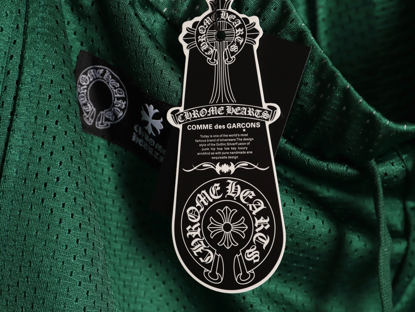 Blending athletic appeal with Chrome Hearts’ signature edge, these shorts are crafted from premium mesh fabric for breathable comfort and unrestricted movement. The elastic waistband ensures a secure, easy fit, while bold detailing adds a distinctive touch.