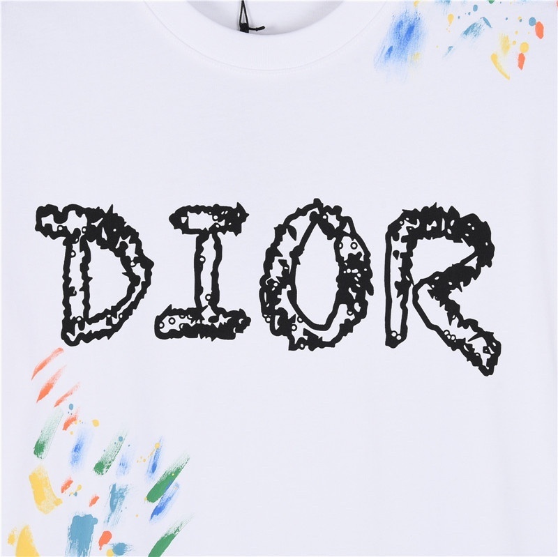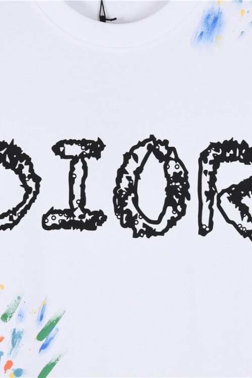 Dior Hand-Painted Logo Graffiti Floral Short-Sleeve T-Shirt