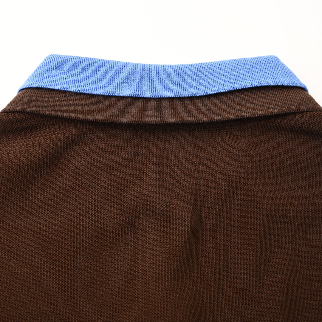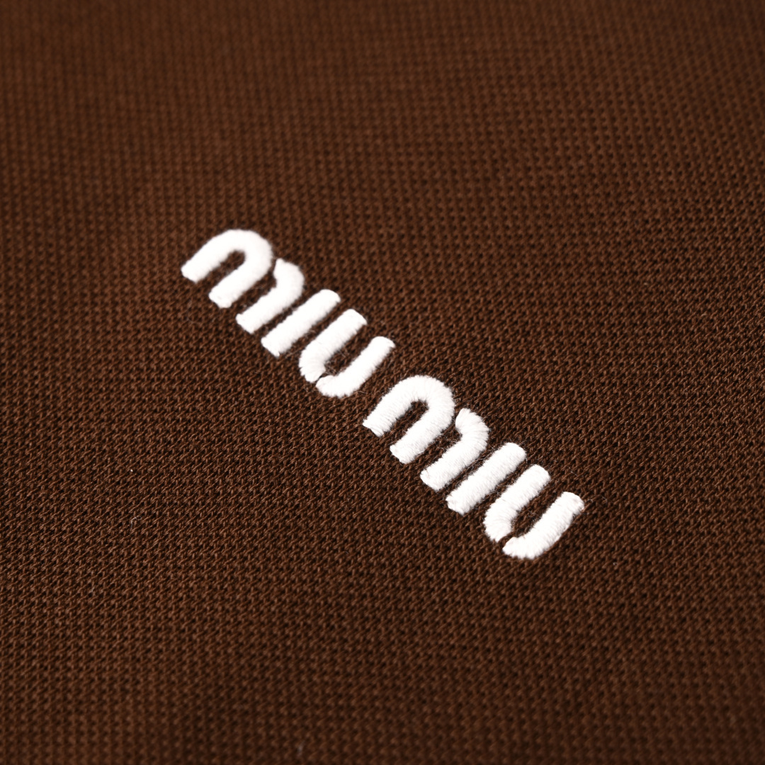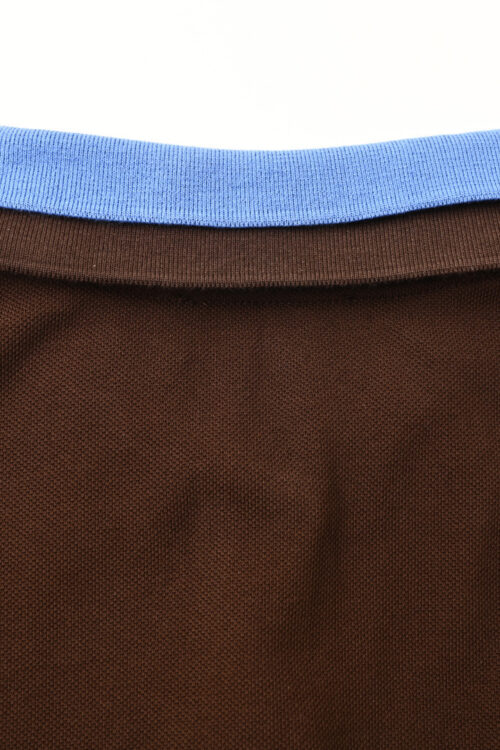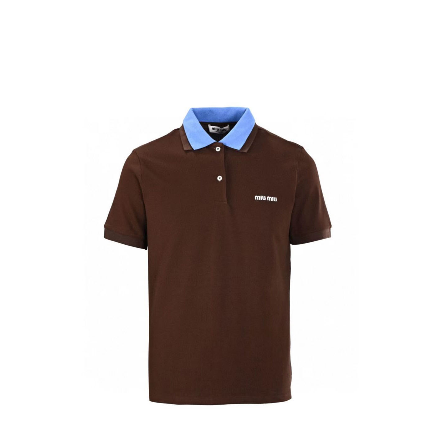 The classic pique polo shirt is reinterpreted according to the Miu Miu codes and stands out for its preppy and casual inspiration, made iconic by the periwinkle-colored double collar detail.